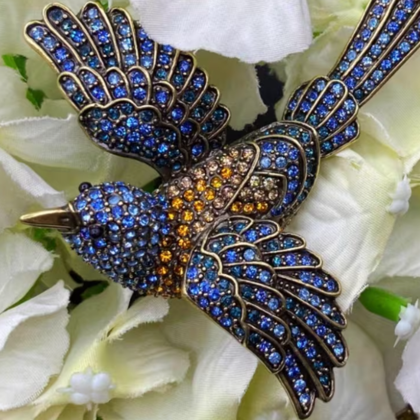 Ginkgo Dove Bird Blue/ Yellow Brooch