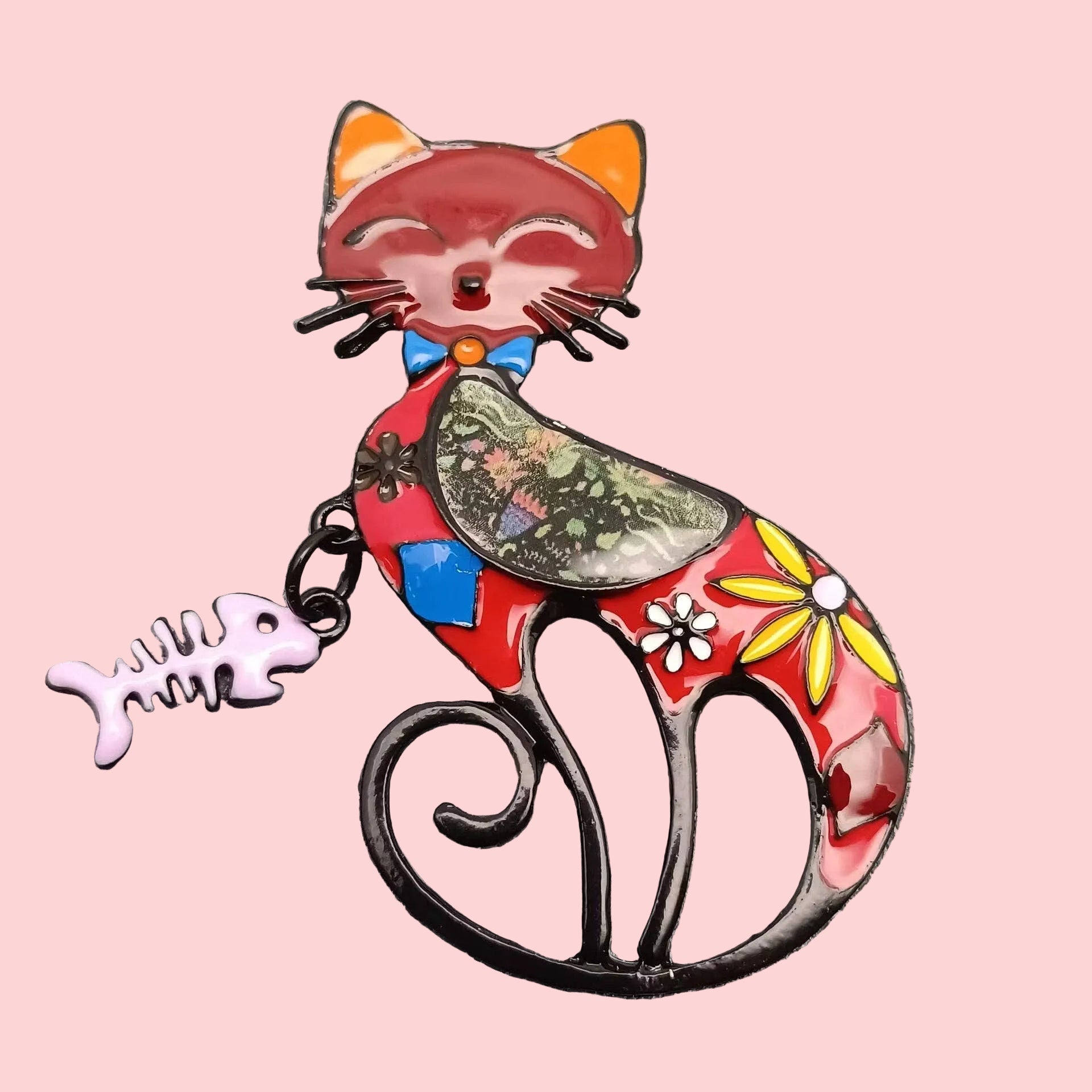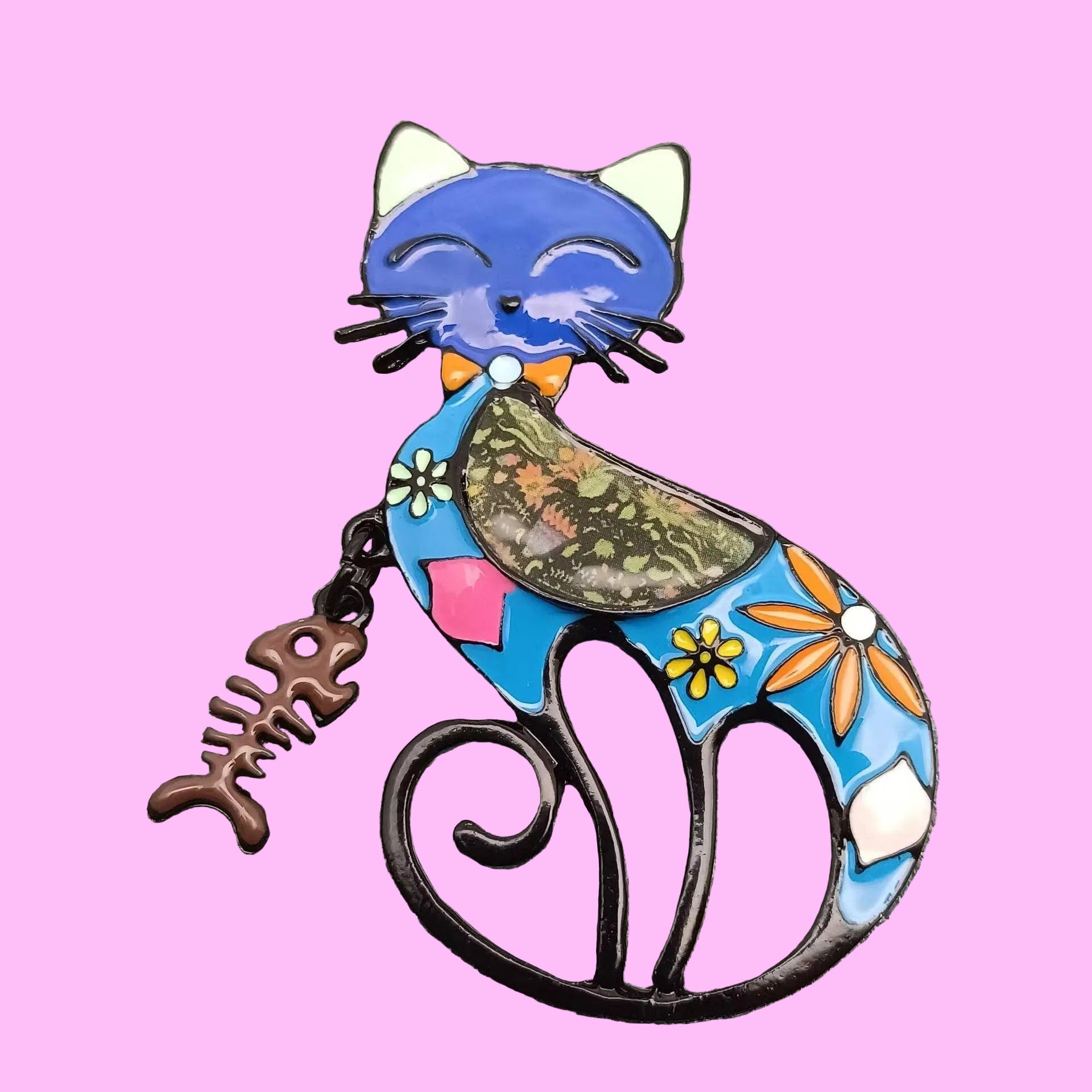 Enamel Fishbone Charm Cat Brooch