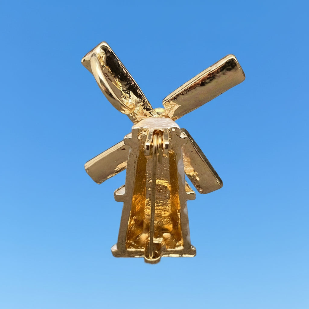 Enamel Lighthouse Windmill Rhinestone Brooch