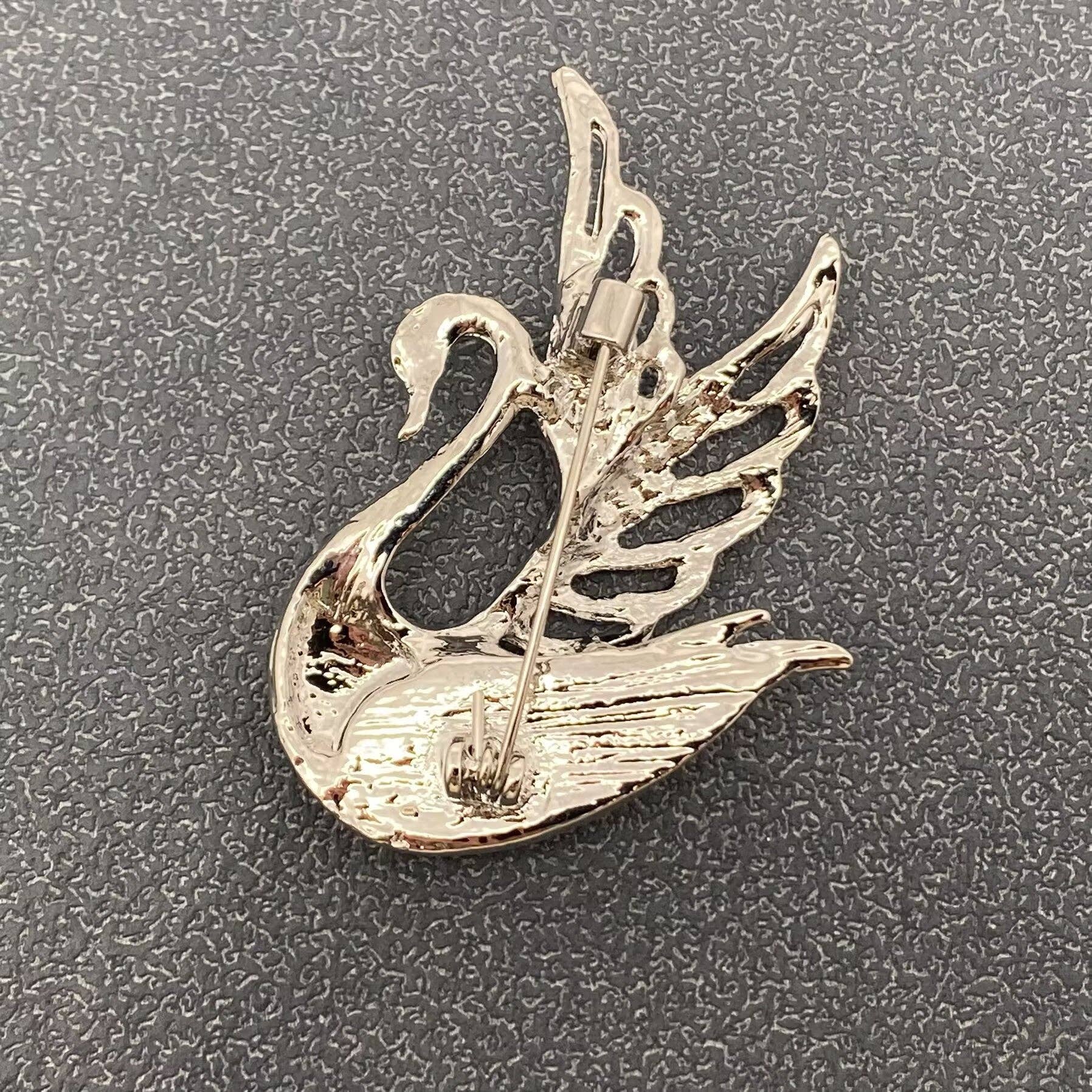 Graceful silver-tone swan with abalone shell body and crystal rhinestone accented wings.
