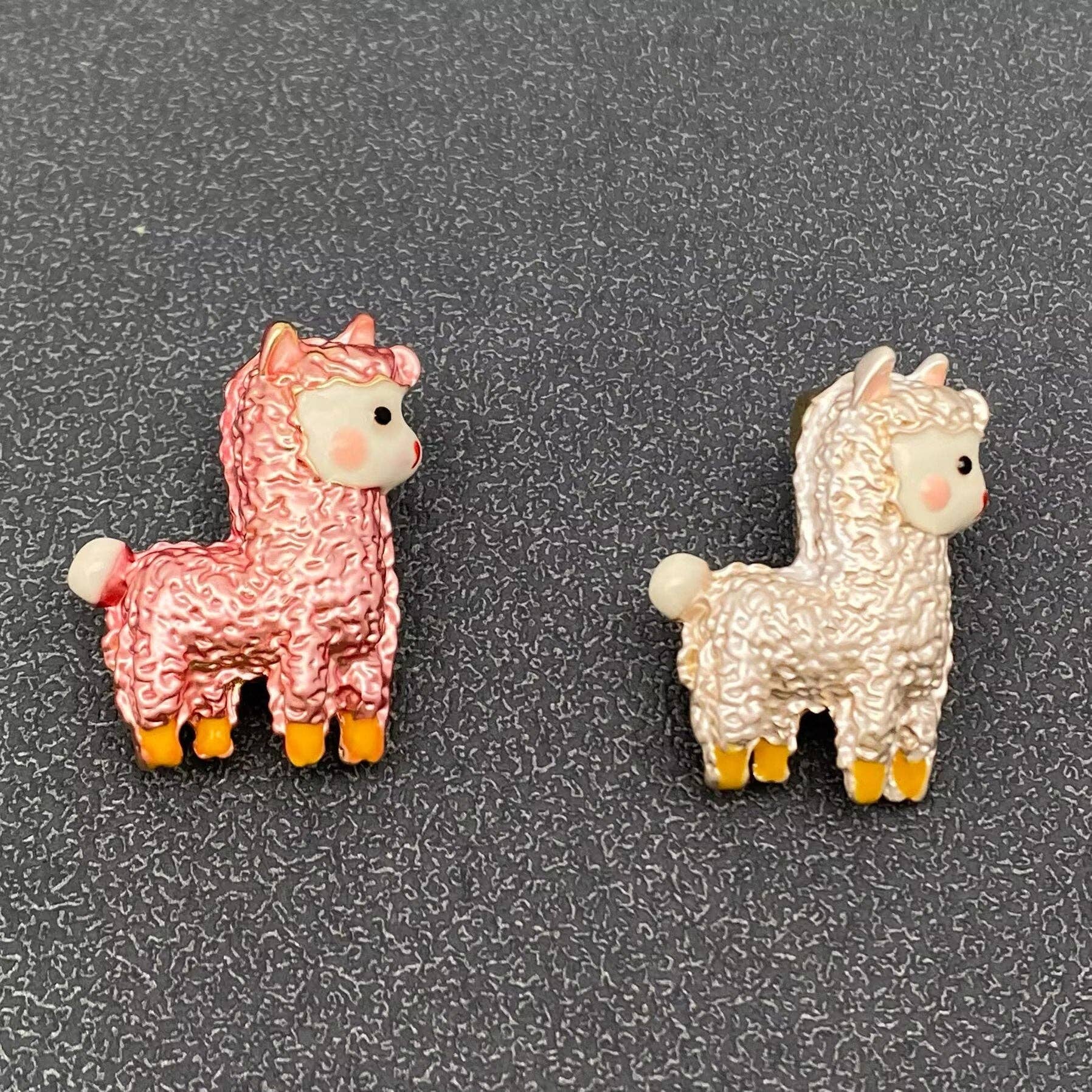 Super cute enameled crinkled metal and acrylic alpaca.