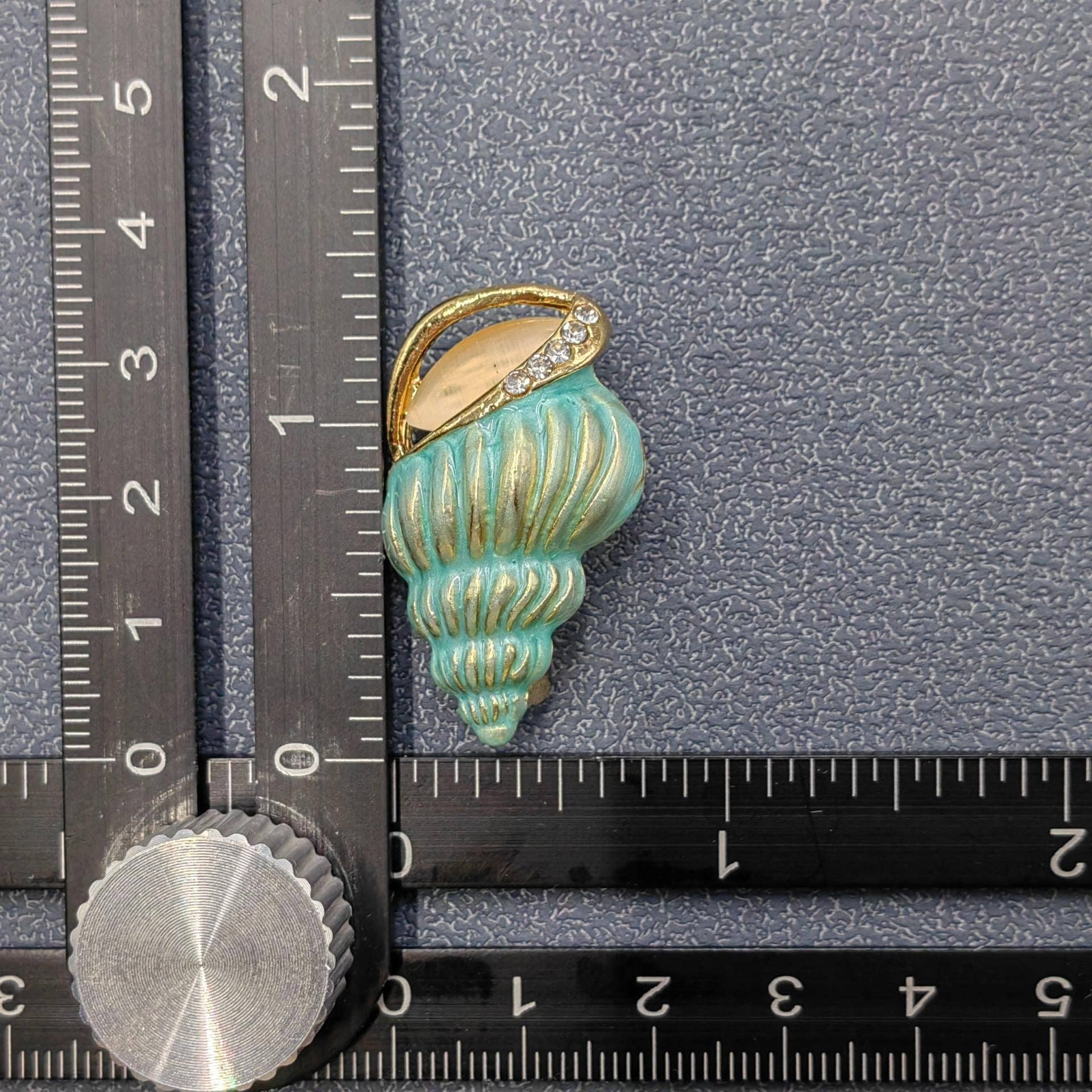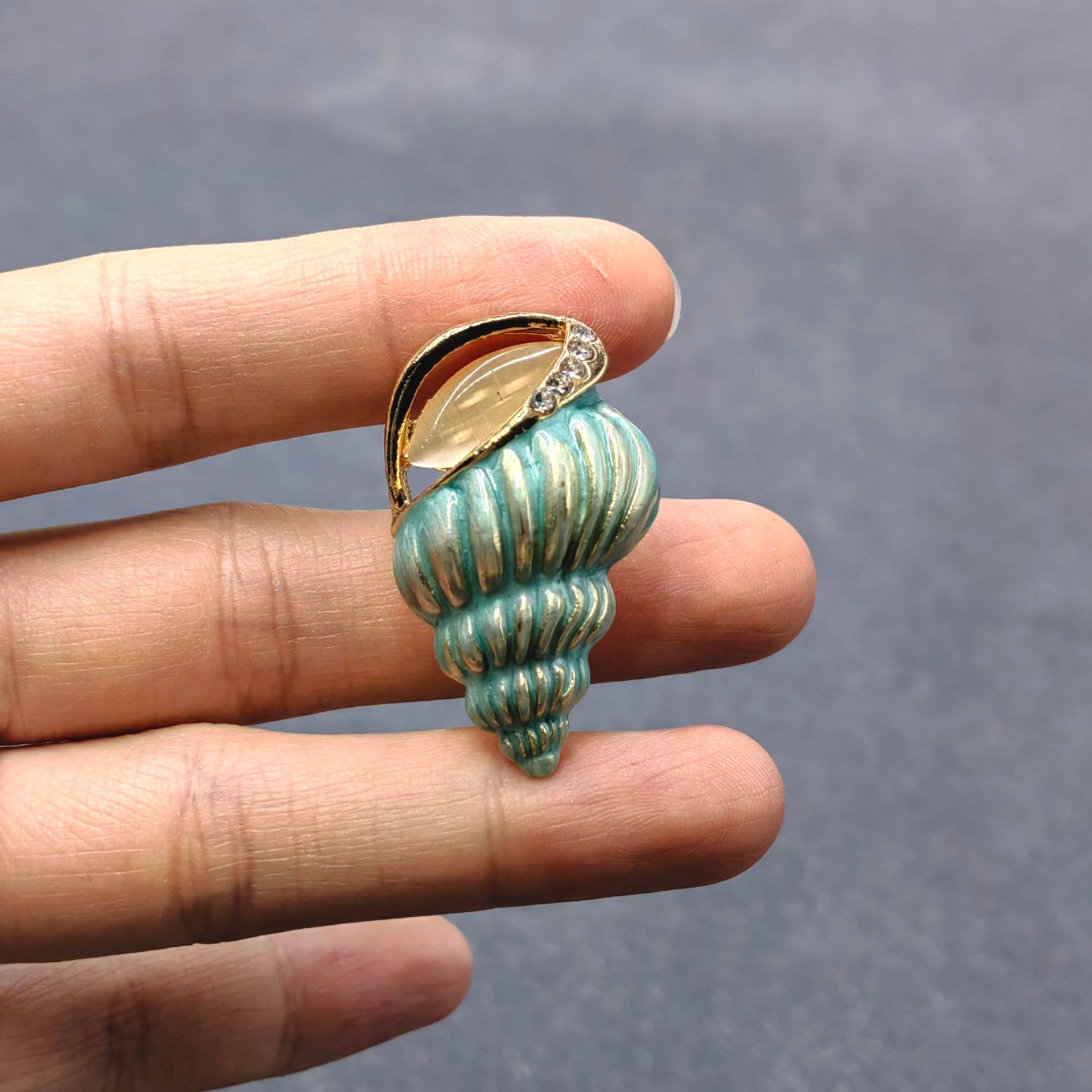 Vintage inspired washed blue enamel seashell with moonstone accents.