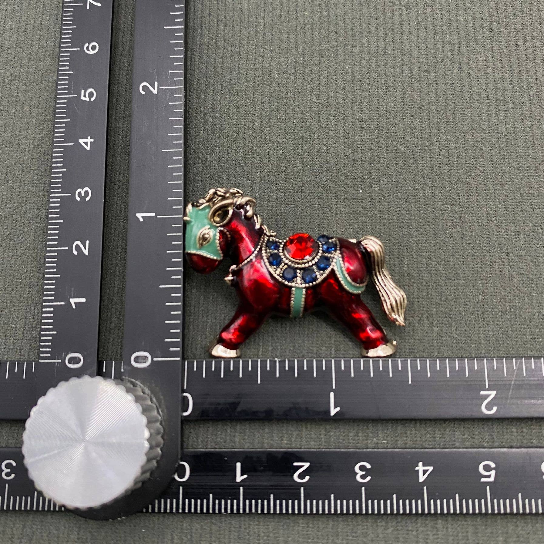 Vintage inspired playful cherry red enamel horse. Beautiful details.