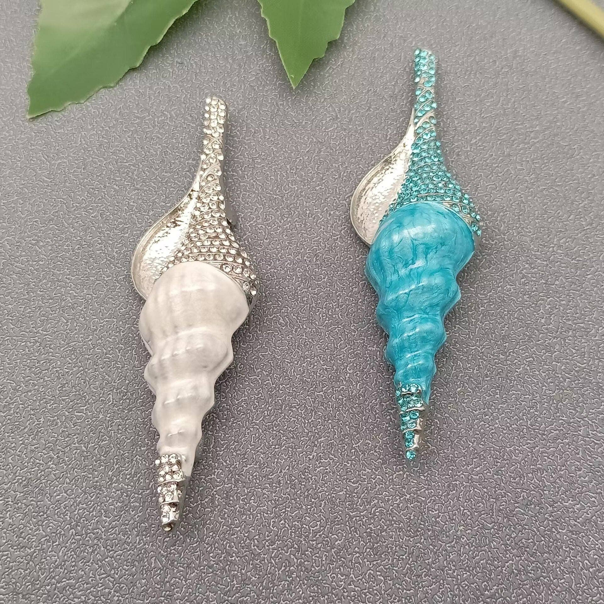 Inlaid Rhinestone Enamel Conch Brooch: White