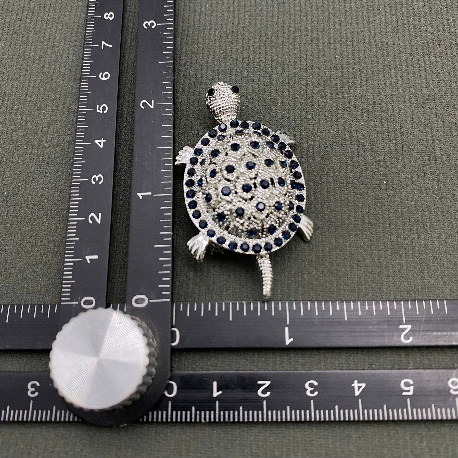 Golden carved metal black crystal rhinestone inlayed turtle.