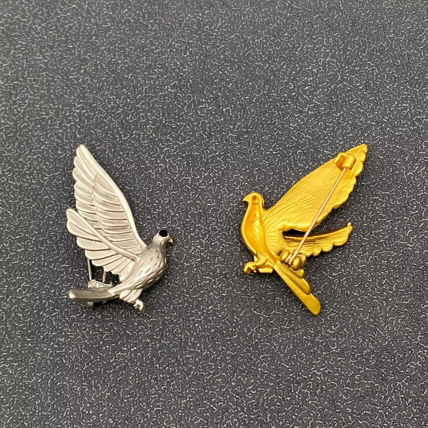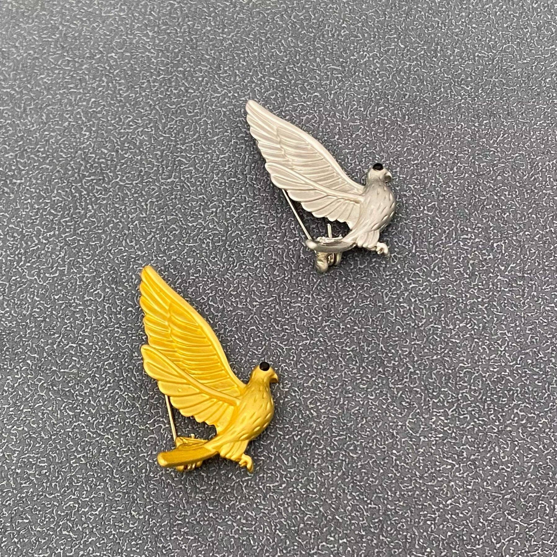 The Vintage Inspired Golden Peace Dove Brooch in silver offers a refined blend of timeless symbolism and elegant design.