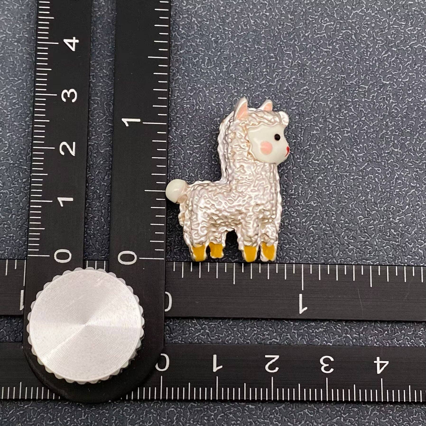Super cute enameled crinkled metal and acrylic alpaca.