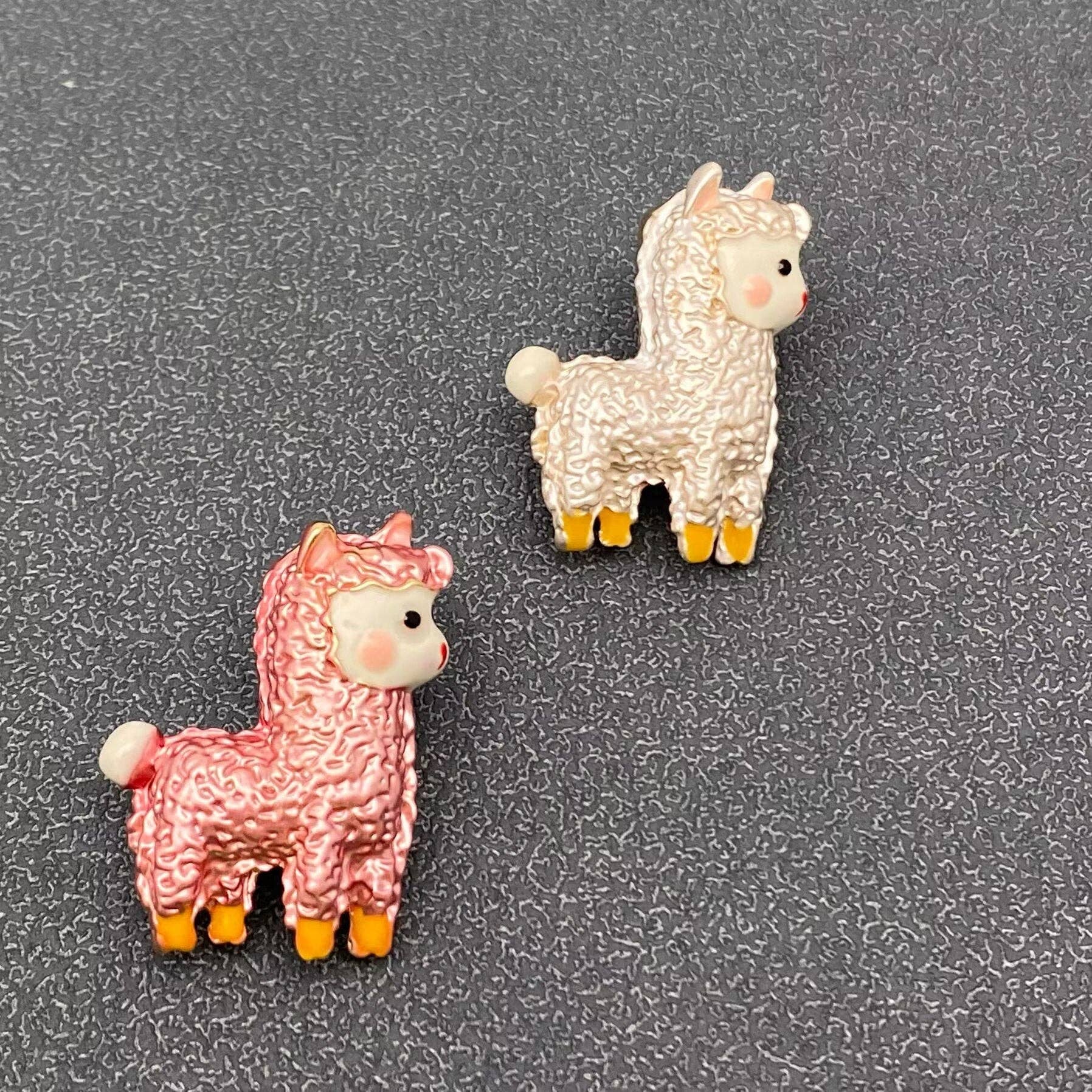 Super cute enameled crinkled metal and acrylic alpaca.