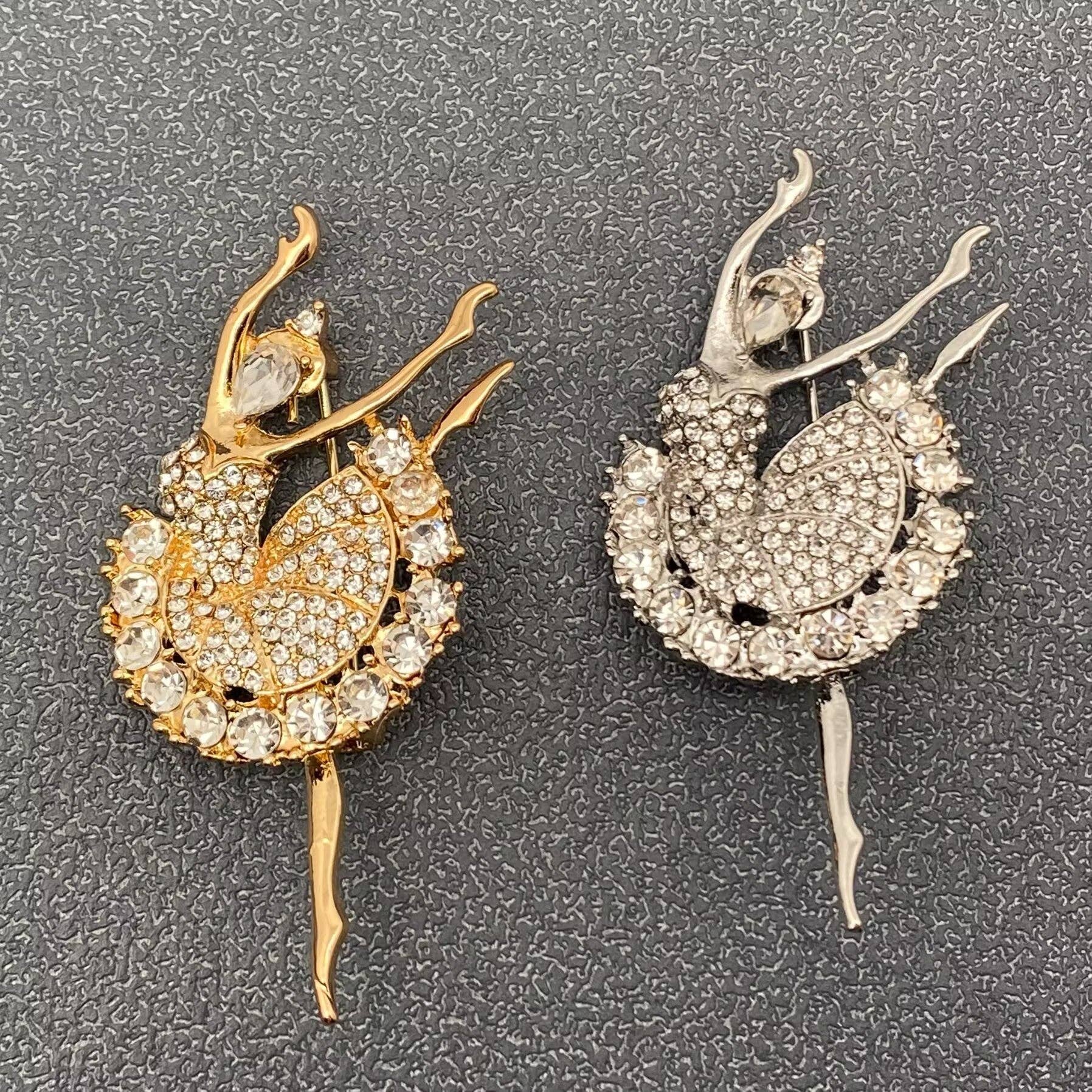 Rhinestone Dancing Ballerina Brooch: Silver