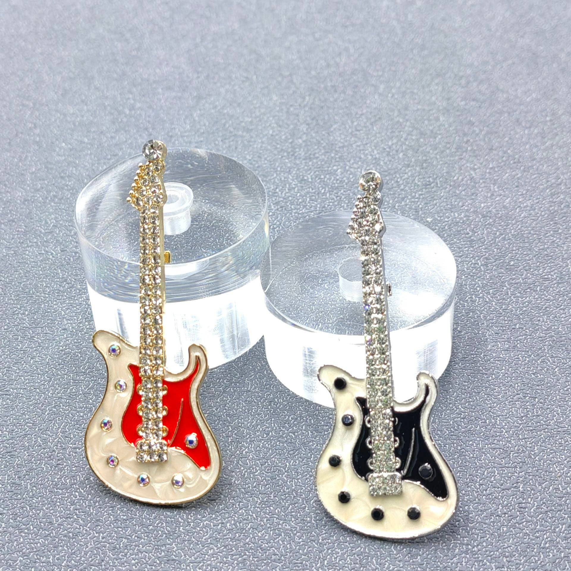 Rhinestone Enamel Rock and Roll Guitar Brooch