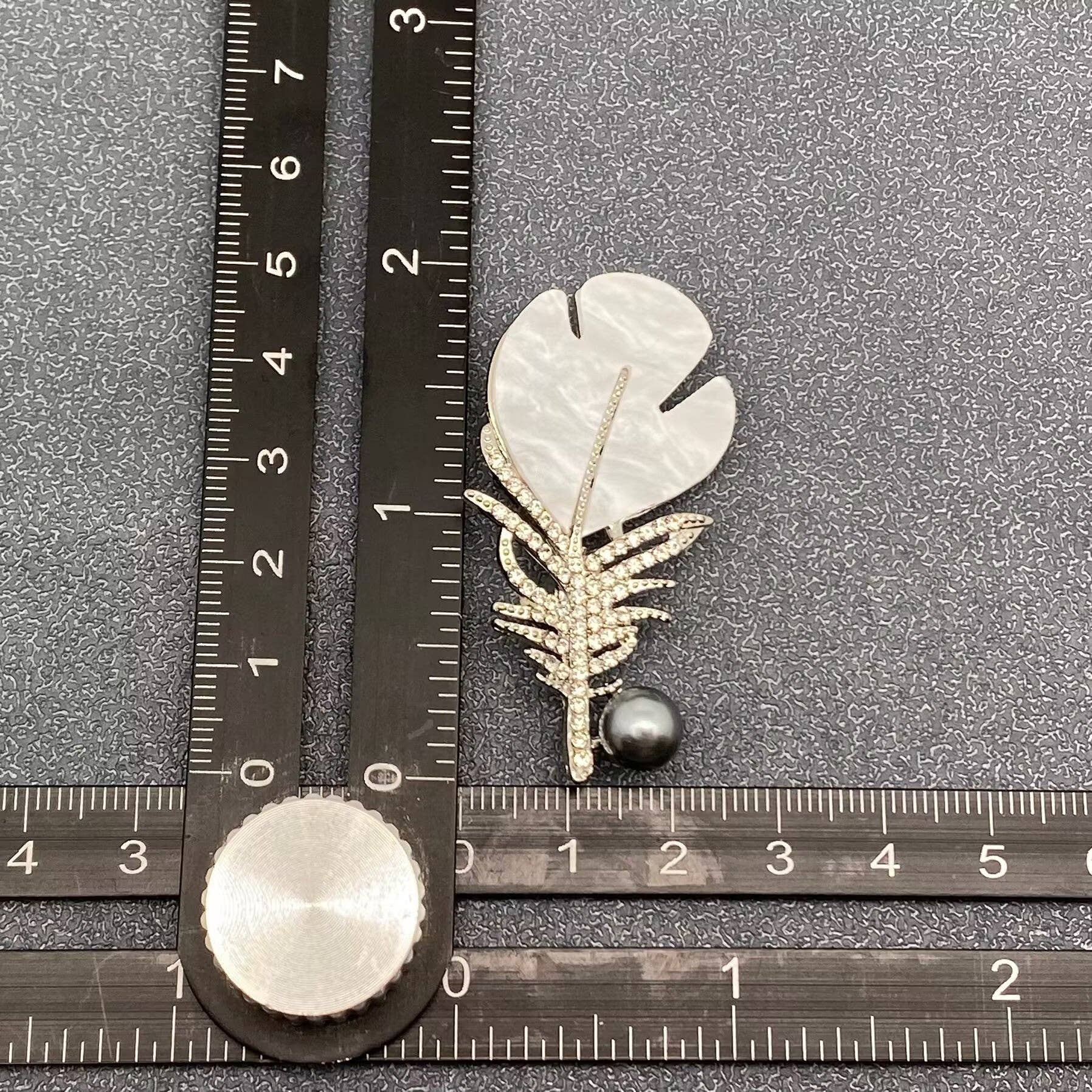 Silver-tone crystal rhinestone feather with a faux pearl accent.