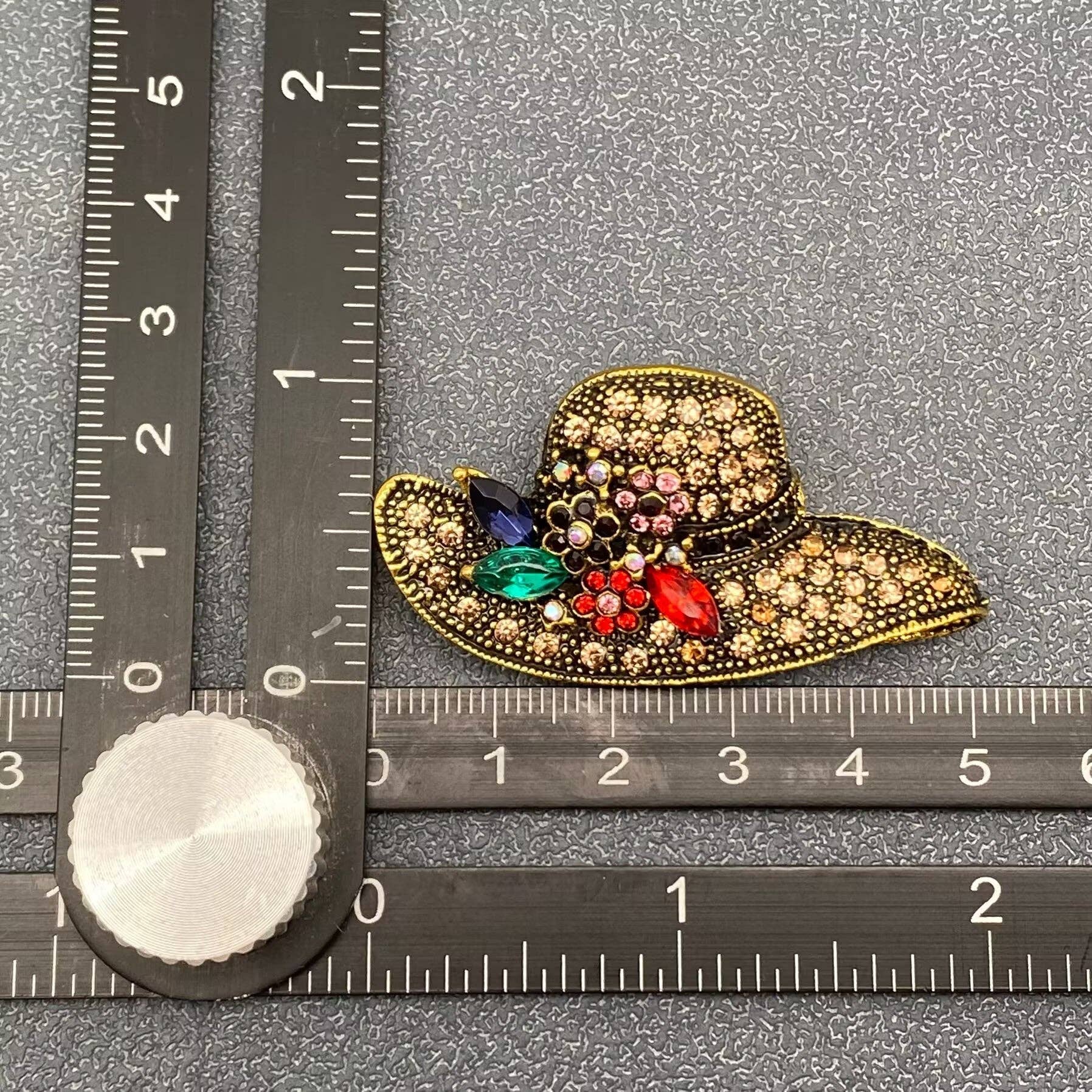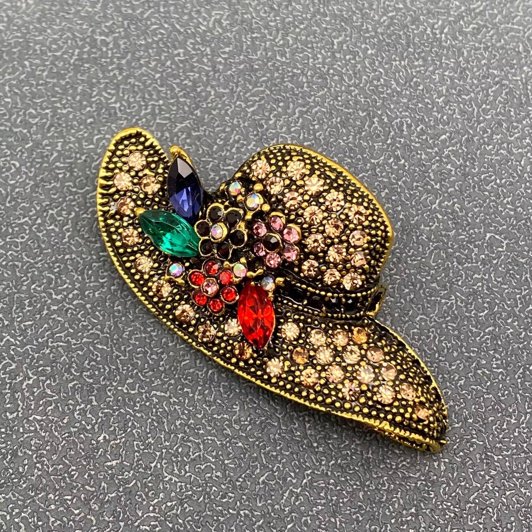 "Aged" brass carved bonnet with colorful crystal rhinestones.