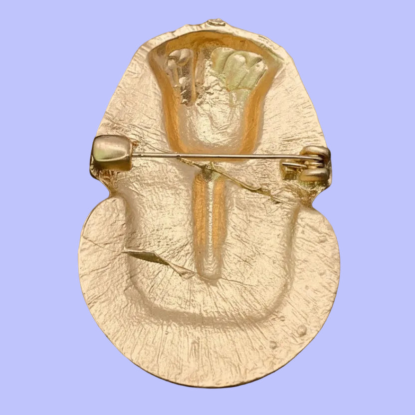 Featuring meticulously crafted enamel work paired with warm matte gold-layered detailing, this brooch evokes the enigmatic presence of Egypt's most iconic guardian. The striking red glass faux ruby serves as a focal point, infusing the piece with regal allure and depth.