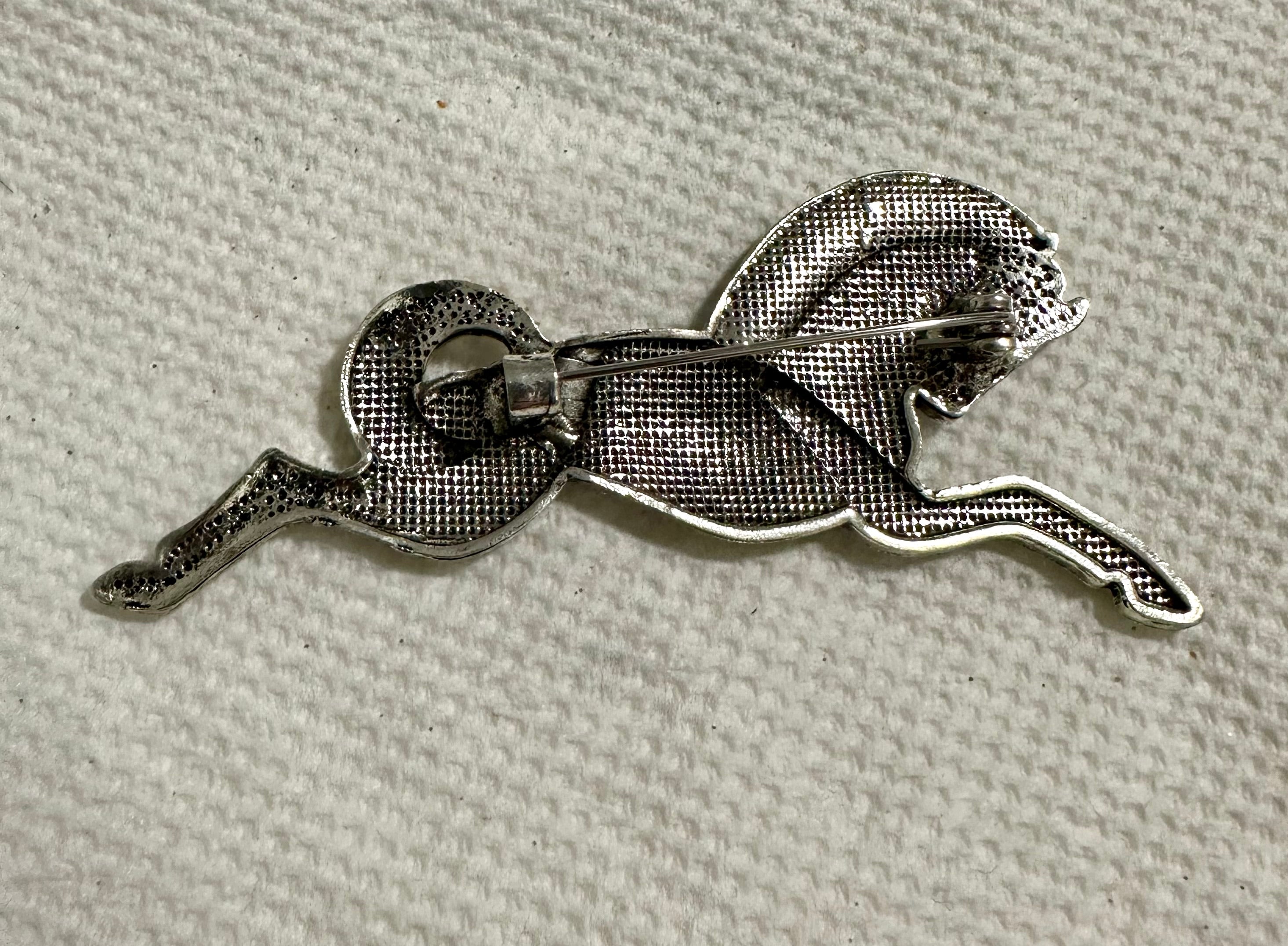 This intricately carved Roman horse brooch features a detailed beaded design in a sleek silver-tone or golden finish. Bold and elegant, it captures a sense of ancient strength and artistry—perfect for adding a touch of historical charm to any outfit.